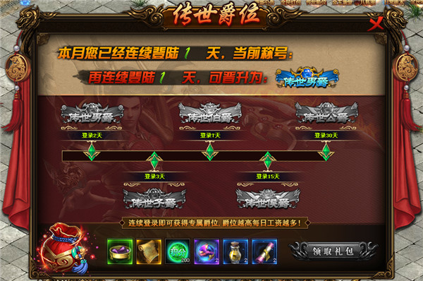 同时在本月,360uu《传奇世界》网页版也将向玩家们推出更多全新福利,传世爵位活动正式来袭,玩家们只需要满足连续登陆的要求后即可领取爵位,从男爵到公爵,一共30天累积,众多称号与福利等待你点击领取。每个爵位称号都将给玩家带来超强属性加成,同时更有每日工资领取,助力你在这个世界的战斗!此外,渡劫突破也已经开启,消耗混沌元力突破等级上限,在360uu《传奇世界》网页版里探索属于你的勇者之道!