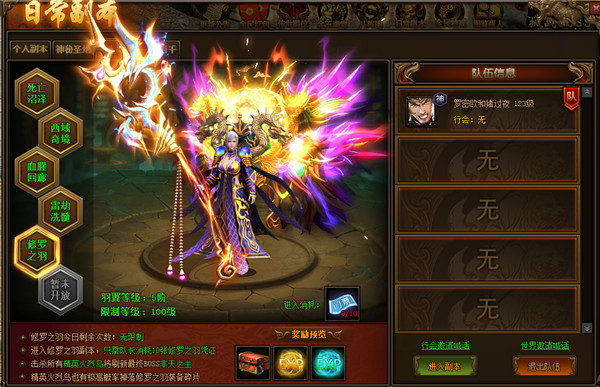 进入条件:队长消耗10张凭证,全体队员羽翼等级≥5阶