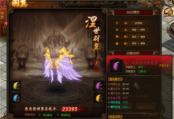 2 新增【羽翼装备】玩法(羽翼5阶开启);新增【修罗之羽】多人副本