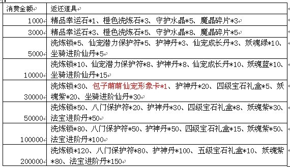 活动期间,玩家在除市场外其他全部系统累积消费至指定额度,可获得额外的奖励。
