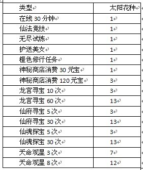 1.活动期间,玩家完成以下指定游戏内容可获得太阳花种,不同数量太阳花种可兑换不同级别的太阳花;