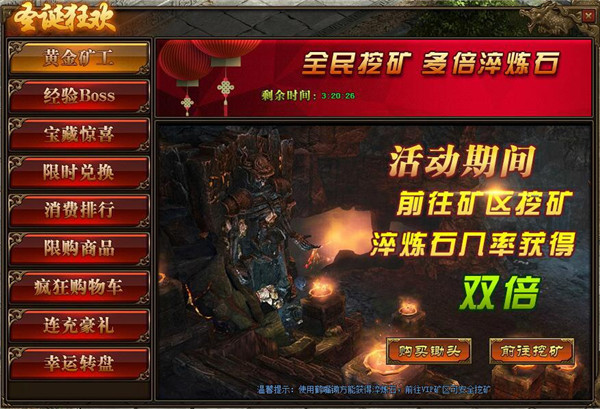 1、活动期间,玩家使用“鹤嘴锄”进行挖矿,获得“淬炼石”的概率翻倍;