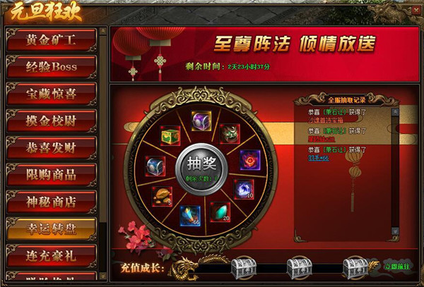 1、活动期间内,每日充值可增加充值成长值,达到一定充值成长值后可领取抽奖次数,每日最多获得3次抽奖机会;