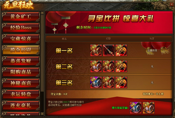 1、活动期间,玩家寻宝次数达到1000次即可参与到摸金校尉排行榜中
