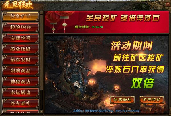 1、活动期间,玩家使用“鹤嘴锄”进行挖矿,获得“淬炼石”的概率翻倍;