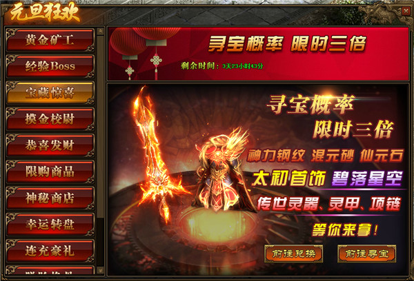 3、活动期间,寻宝可获得高级装备-太初套装、稀有道具-碧落星空