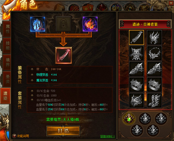1 新增【传世探险】和【遗迹套装】玩法(开服≥15天,境界≥天人9)