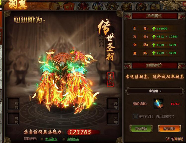 ★ 开放角色,元神16阶翅膀羽灵技能升级