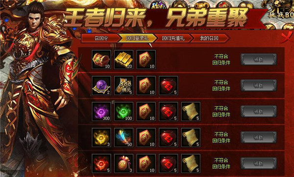 ★满足相关条件即可获得丰厚的回归登录奖励、回归充值奖励