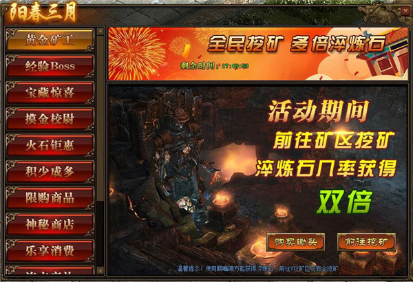 1、活动期间,玩家使用“鹤嘴锄”进行挖矿,获得“淬炼石”的概率翻倍;