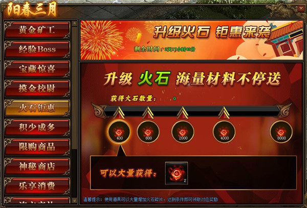 1、活动期间,玩家获得火石碎片数量,达到条件可领取对应火石碎片奖励。