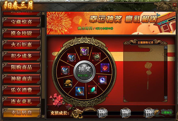 1、活动期间内,每日充值可增加充值成长值,达到一定充值成长值后可领取抽奖次数,每日最多获得3次抽奖机会;