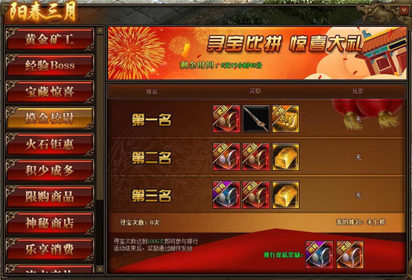 1、活动期间,玩家寻宝次数达到1000次即可参与到摸金校尉排行榜中