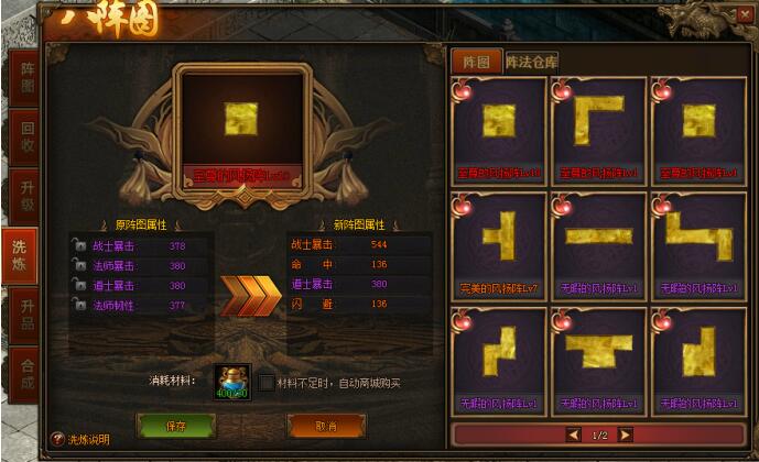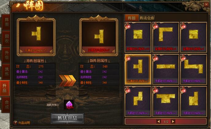 升级过的阵法合成后可返回80%消耗的阵法精华