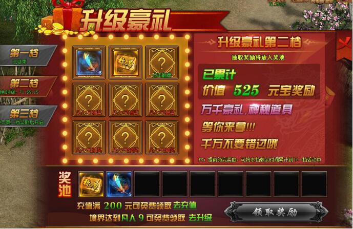 当玩家境界达到凡人9或充值20000元宝后即可领取奖池奖励