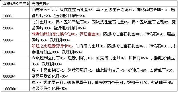 活动期间,累积充值达到指定额度,还可以获得以下超值丰厚的奖励哦!