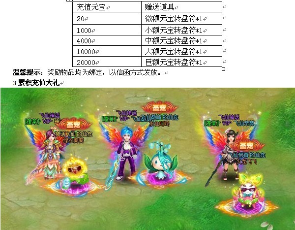 温馨提示:不同充值额度奖励可累积获得,奖励以信函方式发放,均为绑定。