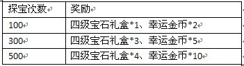 【温馨提示】探宝次数每天清空,奖励每天可领取一次,由信函发放,均为绑定。