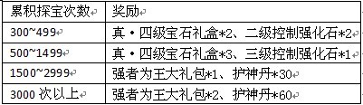 活动期间,每天累计寻宝次数达到150次且在寻宝达人榜排行前3名玩家可获得额外系统奖励。