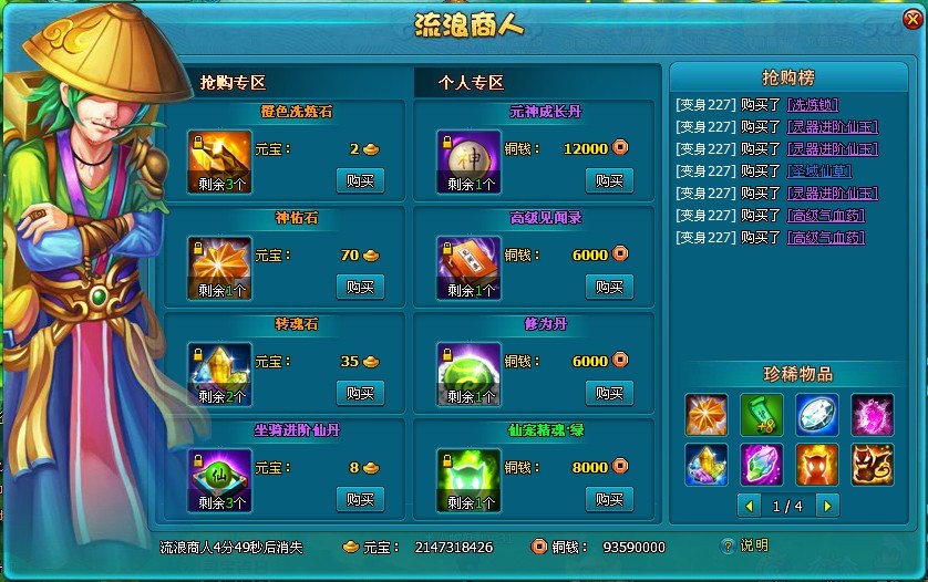 活动期间,流浪商人不定期刷新,前往抢购可低价购买超值商品。