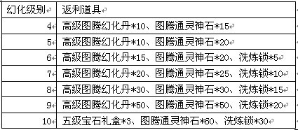 活动规则:活动期间,将图腾幻化到指定级别,可获得额外系统赠礼。