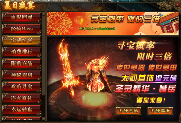 1.活动期间,玩家寻宝概率翻倍,极高几率获得太初首饰,混元砂,传世灵器、传世灵甲以及圣灵精华·憾岳