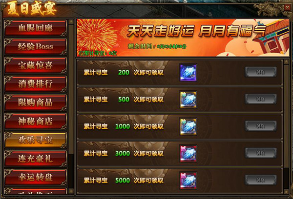 1、活动期间,玩家累计寻宝次数满足要求,可以领取圣灵精华、圣灵精华(神锋)、圣灵精华(撼岳)等相应奖励;