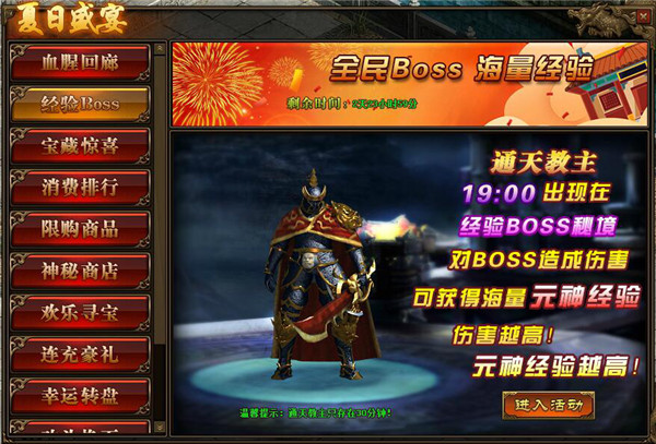 2、活动中,玩家对BOSS造成的伤害,将在活动结束后转换成元神经验并发放;