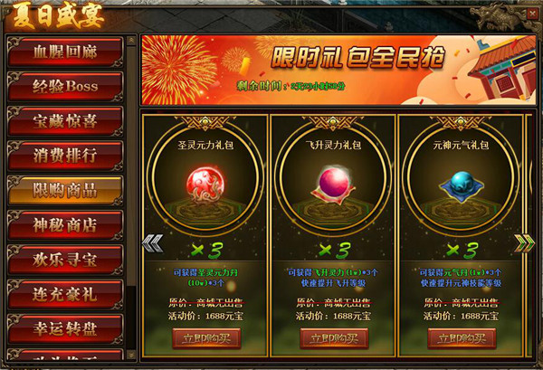 1、活动期间,玩家可在活动面板购买限购商品;(可翻页)