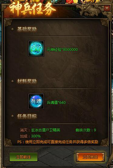 兵魂任务、积分任务、行会任务新增加成功能