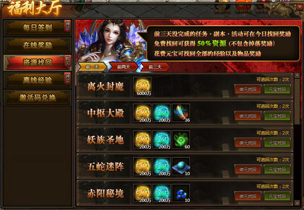 玩家最多可找回三天前的资源
