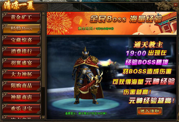 2.活动中,玩家对BOSS造成的伤害,将在活动结束后转换成元神经验并发放;