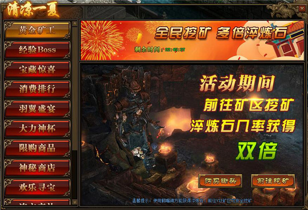 2.注意:必须使用“鹤嘴锄”才可获得“淬炼石”,在VIP矿区可安全挖矿;