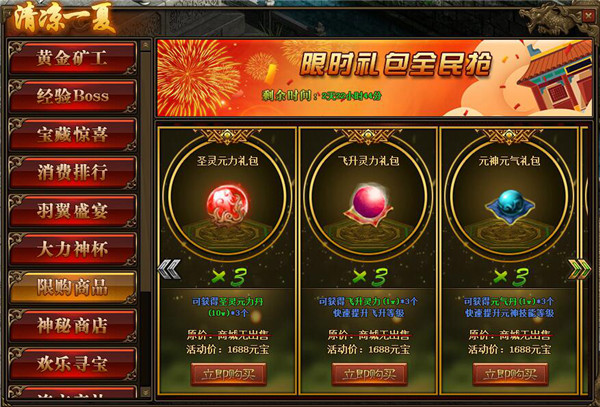 1.活动期间,玩家可在活动面板购买限购商品;(可翻页)