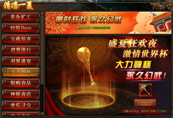 1.活动期间,玩家可在活动面板购买永久幻武-大力神杯;