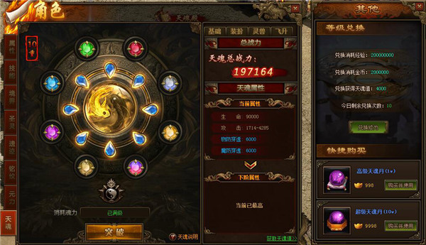 目前在游戏之中,玩家们可以通过消耗天魂值来提升天魂系统等级,在提升至特定等级后,即可佩戴高级天魂石,获取直接的属性加成,激活天魂锁链更可以提升合击的伤害,目前系统内每天可兑换10次天魂值。同时伴随天魂系统的开放,天魂殿挑战也将对你打开大门,海量天魂装备等你击杀掉落获取,玩家更可以前往皇城神炉合成升级天魂装备,更多精彩敬请登陆360uu《传奇世界》网页版体验,英雄再添战力,即刻激活出发!