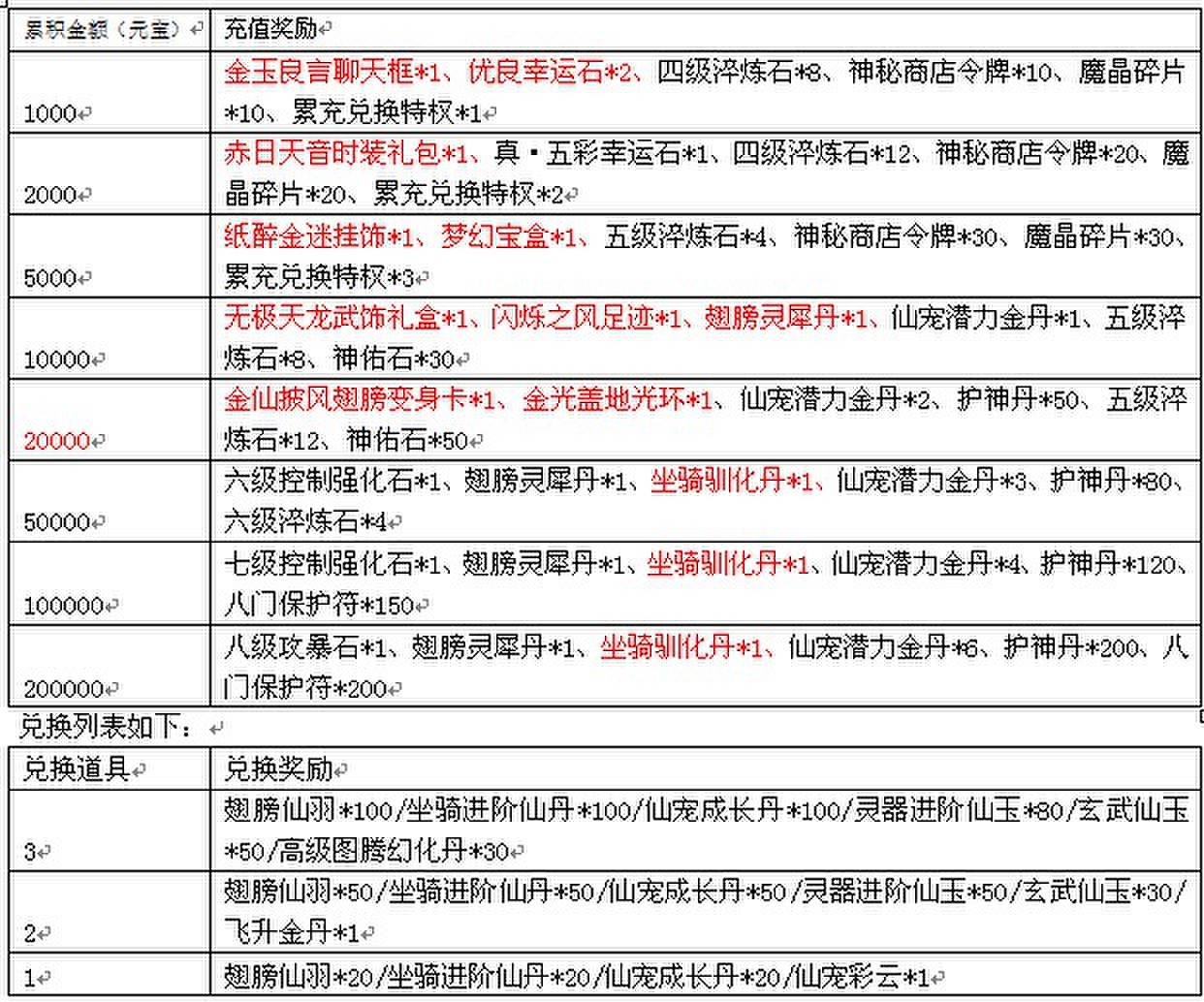 温馨提示:不同充值额度奖励可累积获得,奖励以信函方式发放,均为绑定。