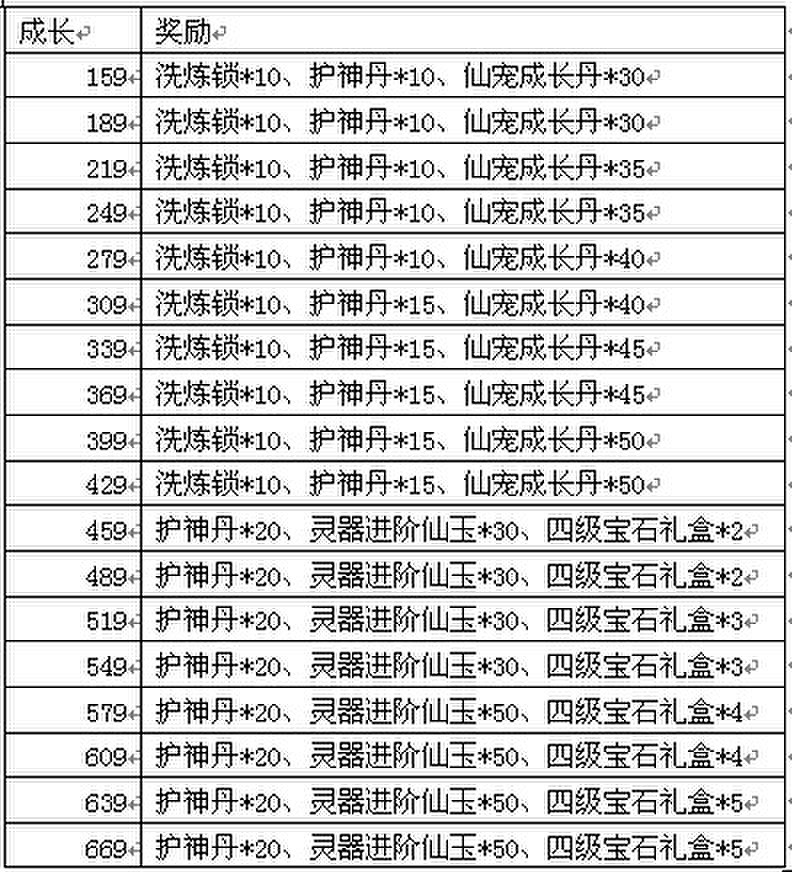 活动期间,将仙宠提升至指定成长可获得额外奖励。