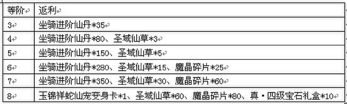 活动期间,将坐骑进阶至指定阶数,可获得额外系统赠礼。