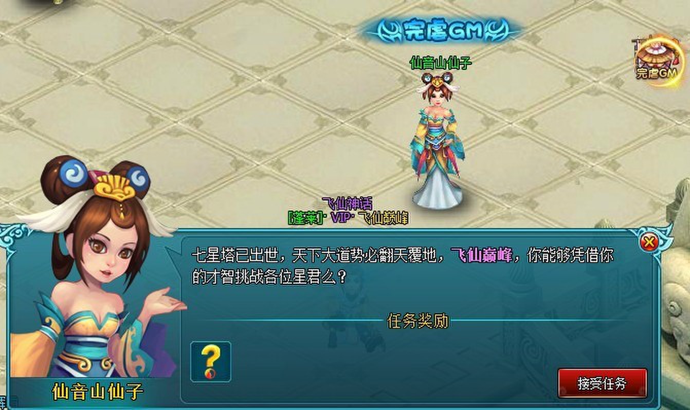 ①近来GM为答谢玩家对于飞仙的支持,来到了洛水城后仙音山中,GM这次携带的珍宝有:GM变身卡、鲜花99朵、法宝进阶丹、三级熔炼符、仙宠成长丹、幸运石等,大家快去围剿GM吧!