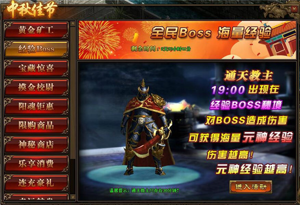 2.活动中,玩家对BOSS造成的伤害,将在活动结束后转换成元神经验并发放;