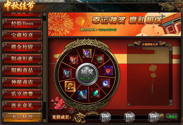 1.活动期间内,每日充值可增加充值成长值,达到一定充值成长值后可领取抽奖次数,每日最多获得3次抽奖机会;