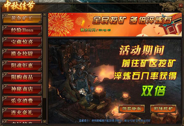 2.注意:必须使用“鹤嘴锄”才可获得“淬炼石”,在VIP矿区可安全挖矿;