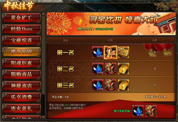1.活动期间,玩家寻宝次数达到1000次即可参与到摸金校尉排行榜中