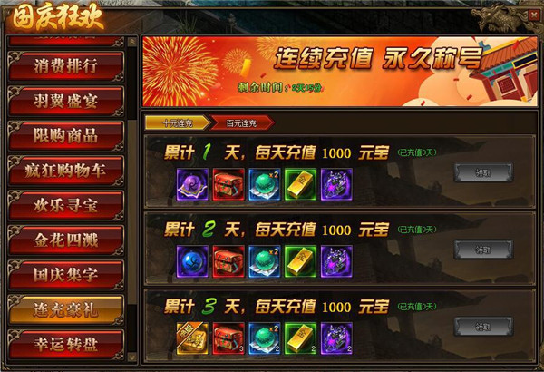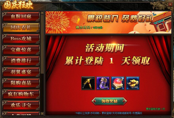 2.累积登录7天即可领取绝版称号-欢度国庆