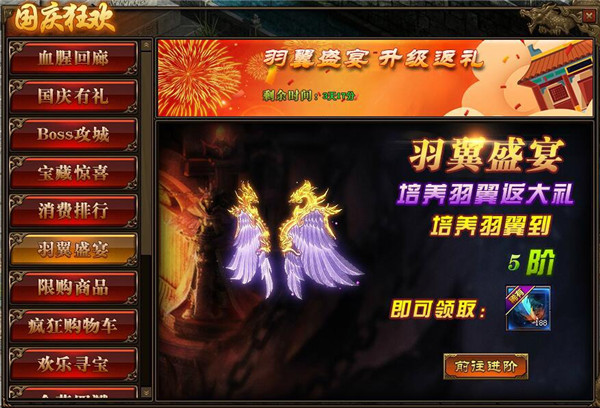 2.玩家每再提升一级的羽翼,将可再次免费领取羽毛;