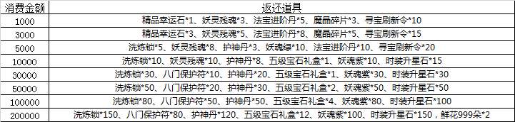 活动规则:活动期间,玩家在除市场外其他全部系统累积消费至指定额度,可获得额外的奖励。