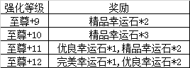 活动规则:活动期间,任意装备至尊强化成功至指定级别,都可获得额外奖励。