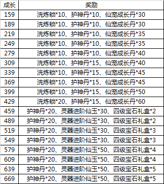 活动规则:活动期间,将仙宠提升至指定成长可获得额外奖励。