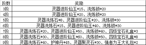 活动规则:活动期间将灵器进阶至指定阶数,将获得额外系统奖励。